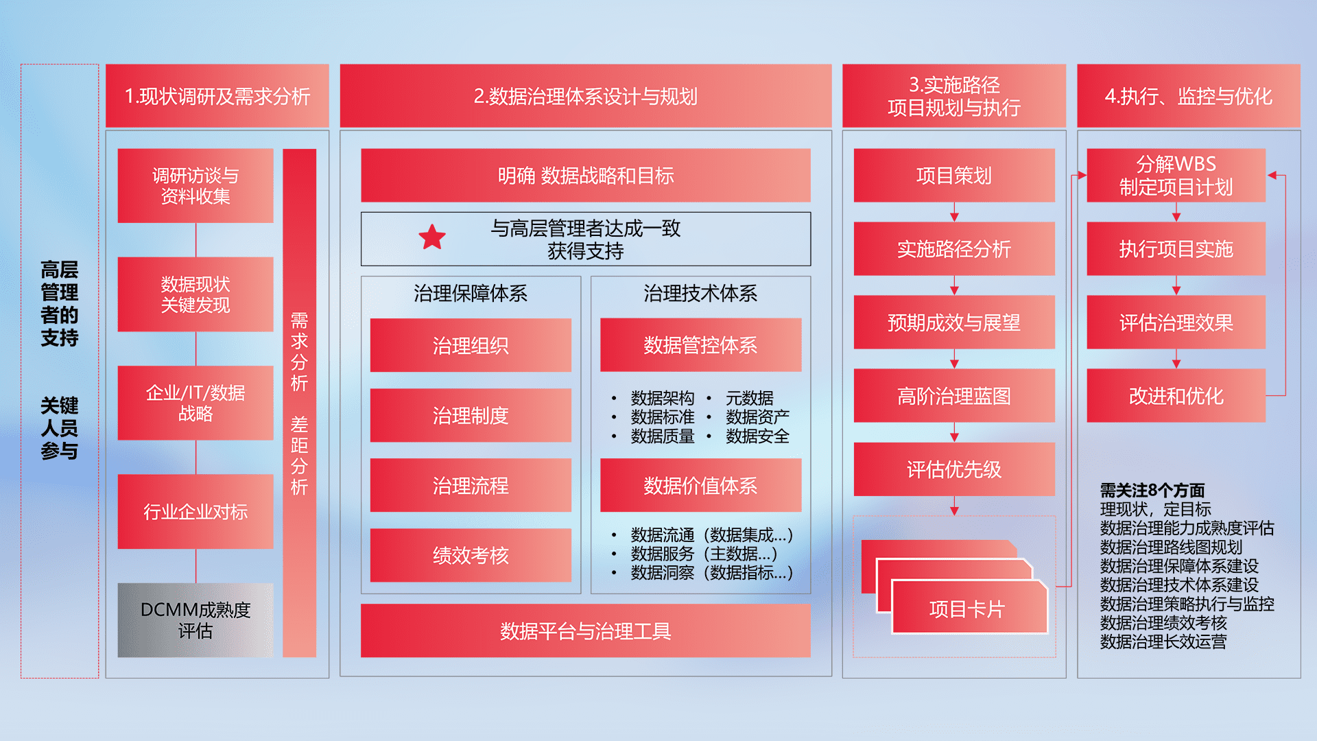 制定并执行统一的数据标准,,规范数据定义和格式,,,消除冗余和不一致性,,实现跨部门和跨系统的数据一致性,,,为企业提供标准化的数据基础。。。。